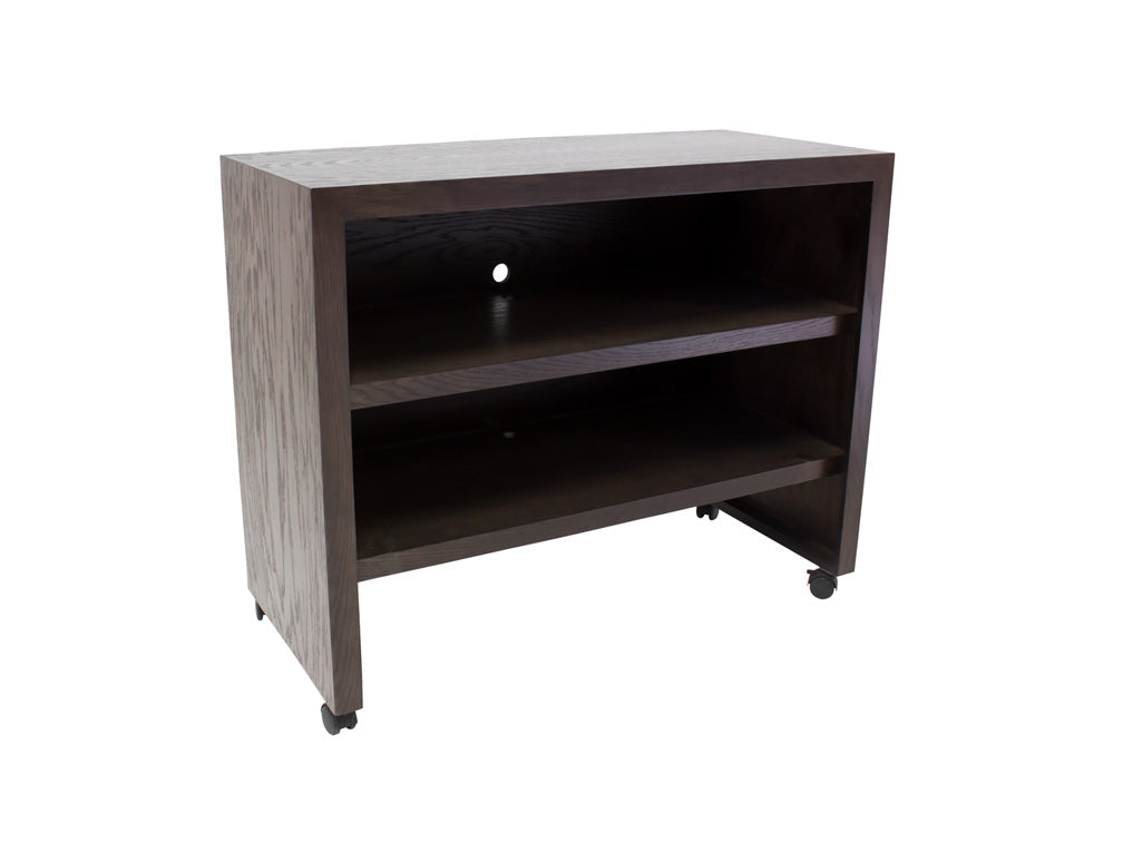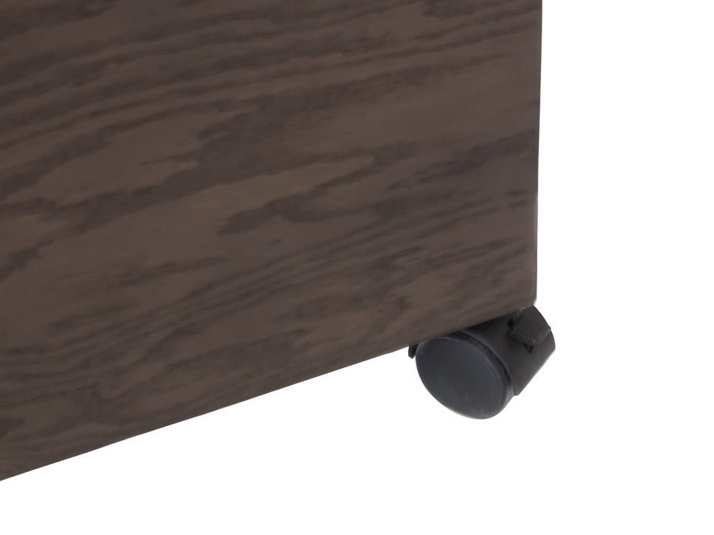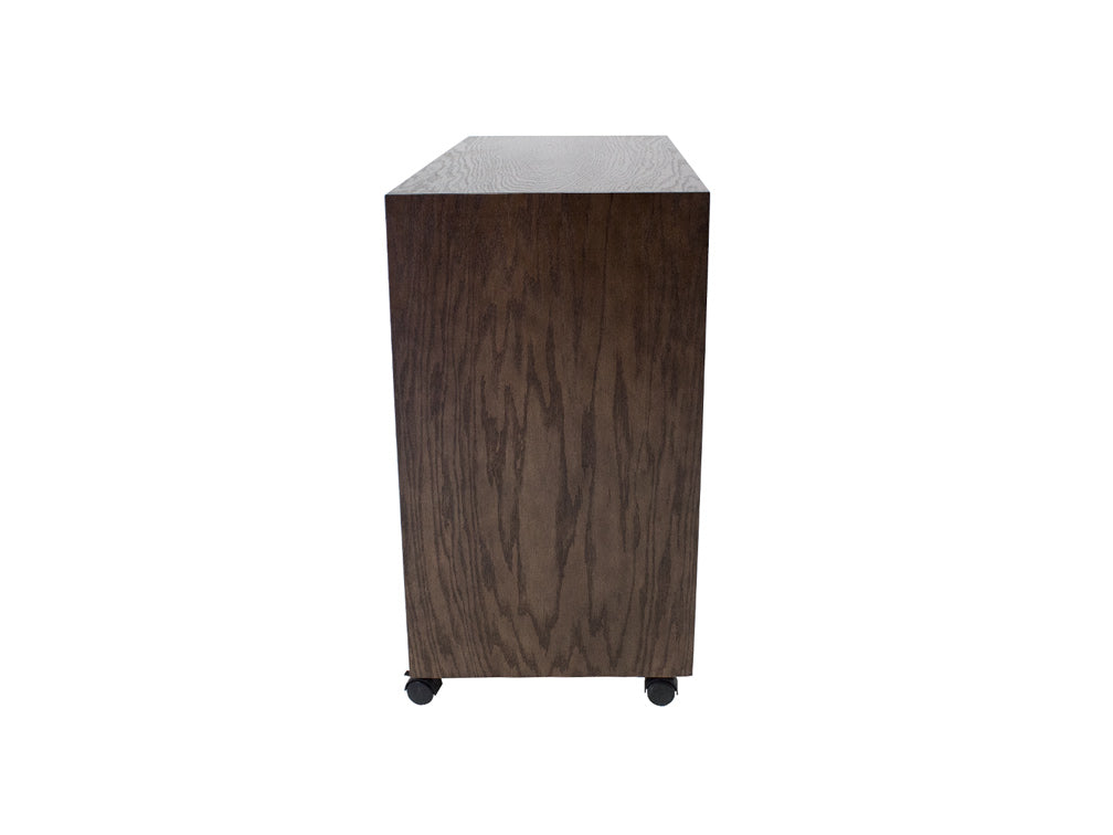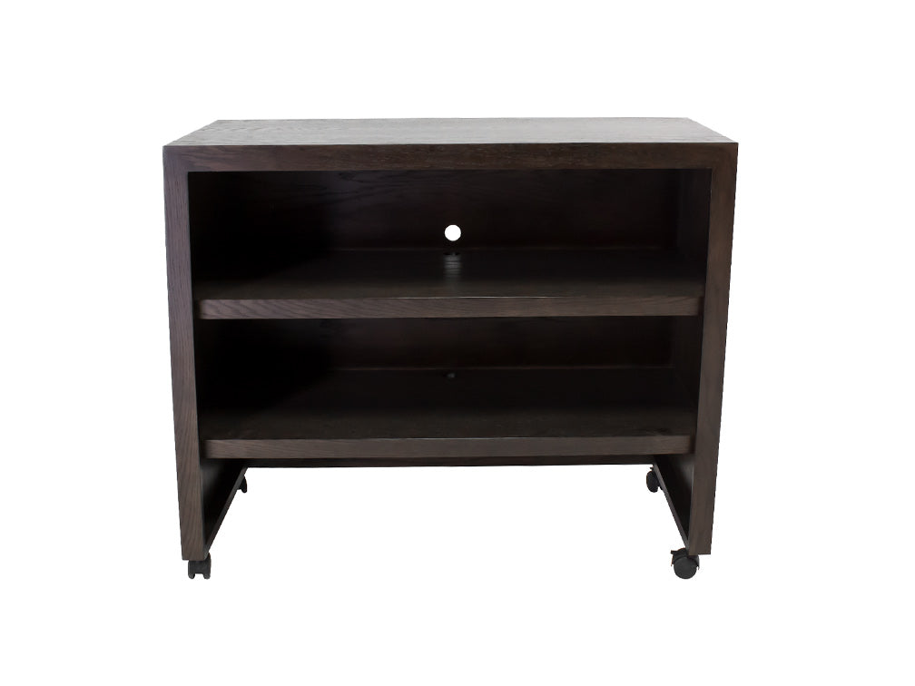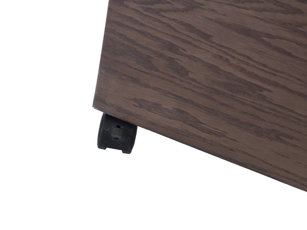 El Centro de T.V Moderno Kontempo Inu es de madera de poplar con enchapado de encino en color nogal obscuro.