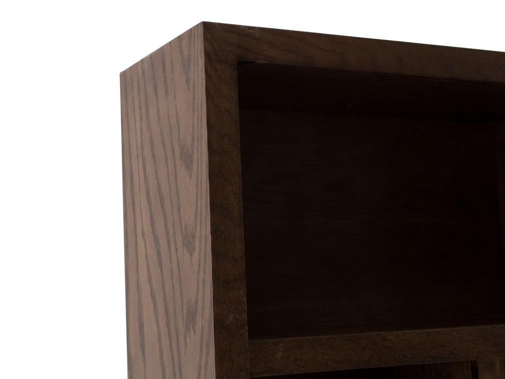 En la parte superior tiene 3 entrepaños en horizontal y otros 3 en los laterales de manera vertical, en los cuales podrá colocar decoraciones u objetos medianos.