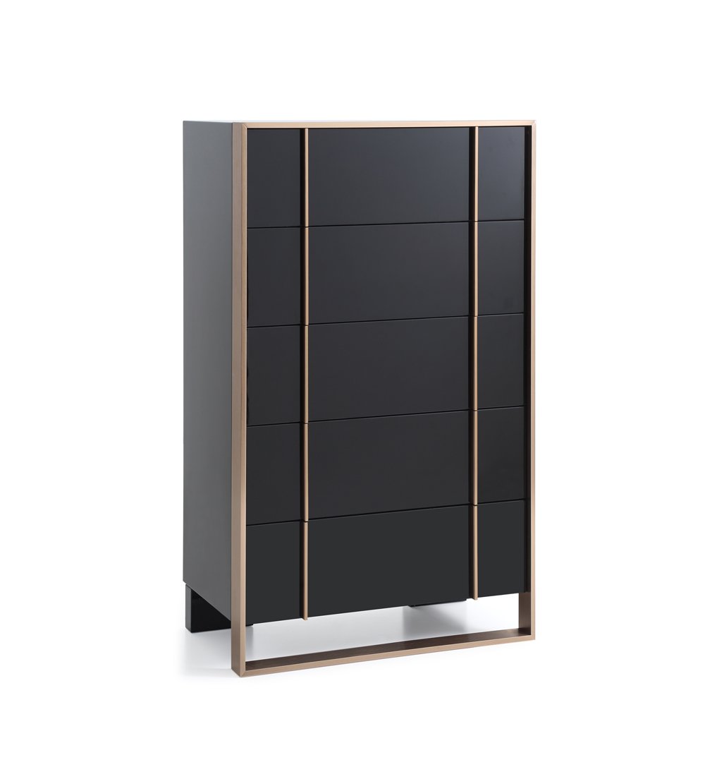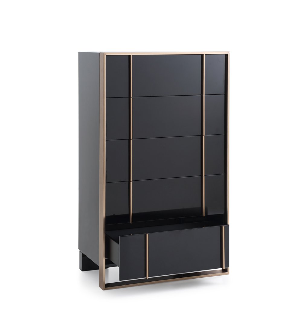 brillante del cofre. Cinco cajones de cierre suave crean la máxima