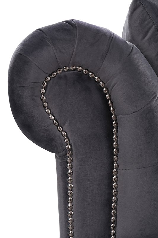 terciopelo gris. Los asientos y respaldos densamente acolchados, además de