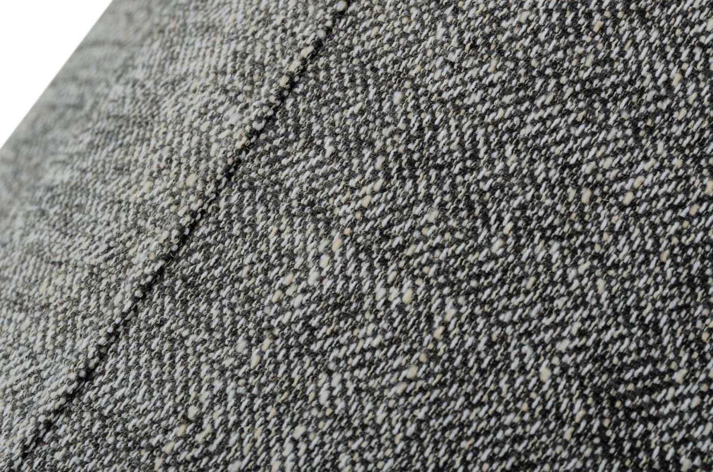 El sofá Janina es un sofá de tela gris oscuro con brazos cuadrados, patas