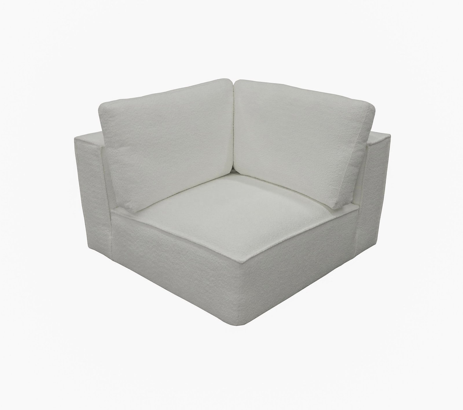 100% poliéster, este sofá seccional presenta un color blanco limpio que