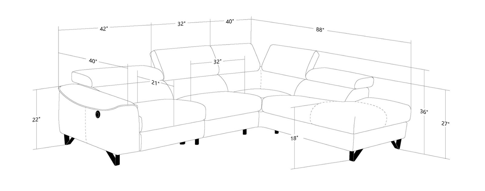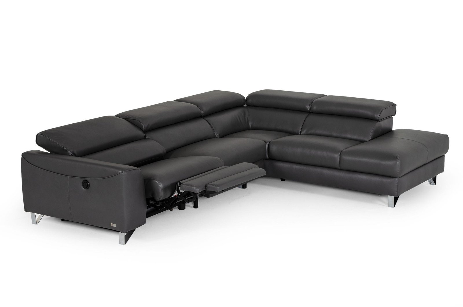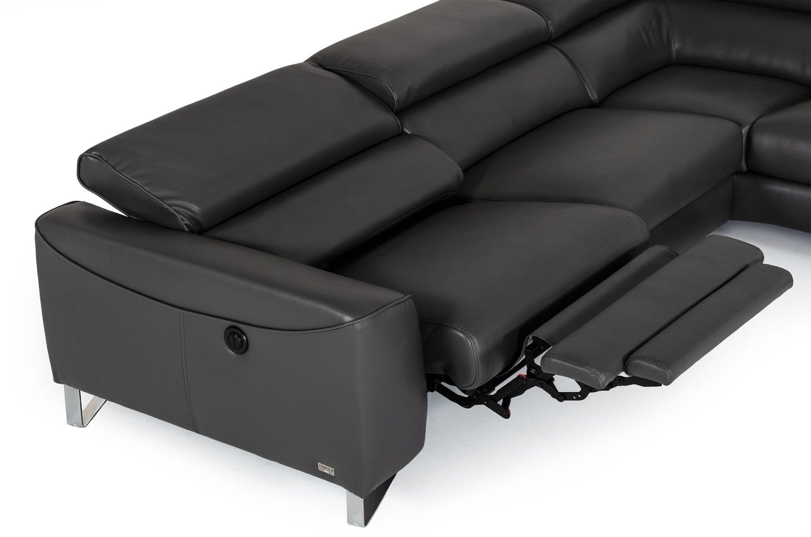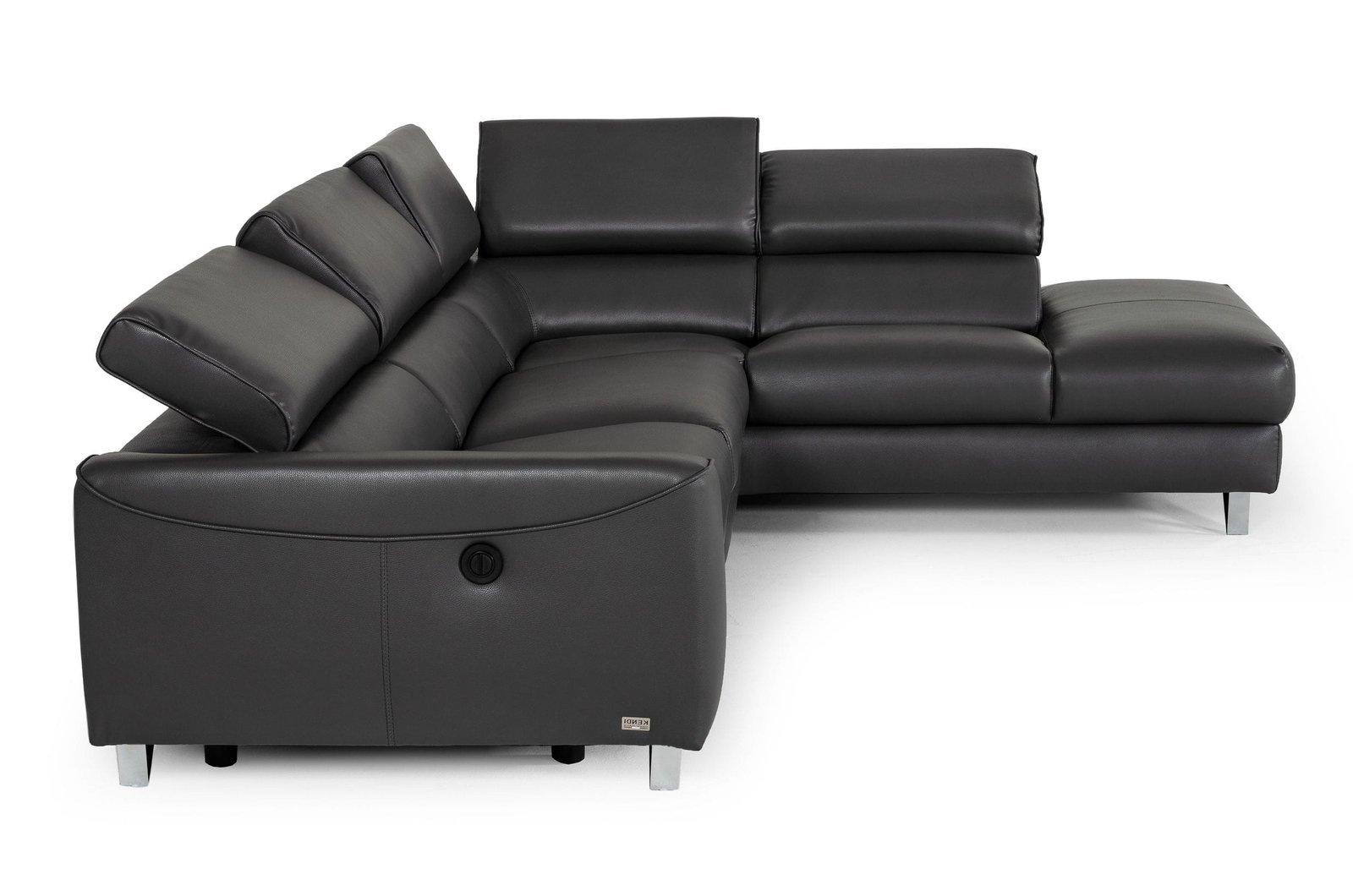 sillón reclinable orientado hacia la derecha y reposacabezas ajustables, este