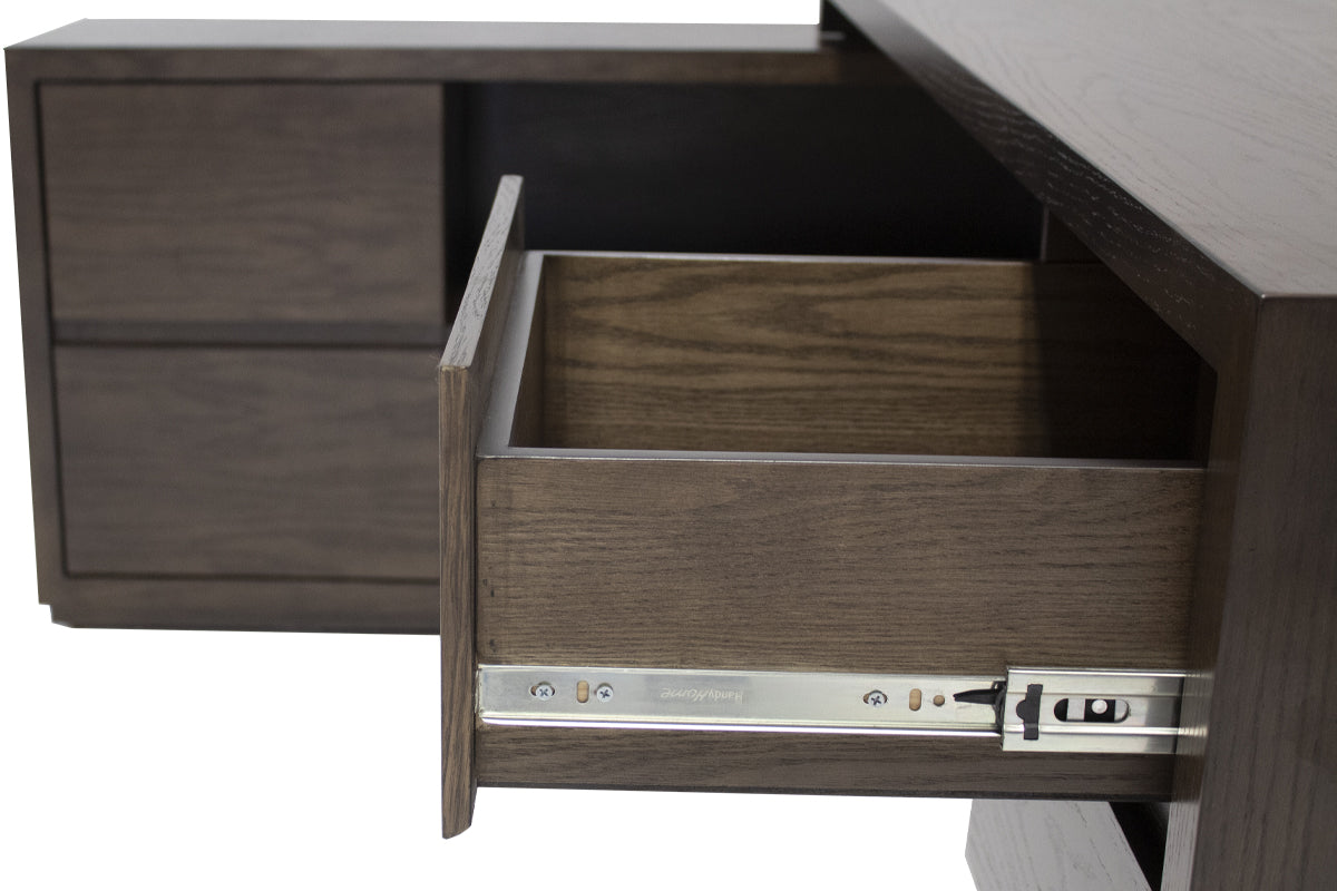 Su credenza lateral cuenta con 2 cajones archiveros y 1 entrepaño para almacenar lo que necesite en su día a día.