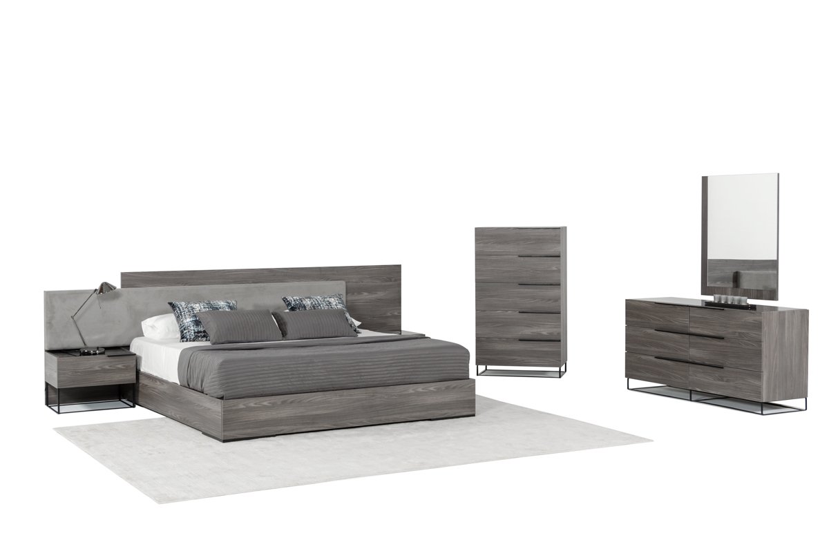 El juego de dormitorio Modrest Enzo italiano moderno de nogal gris y tela