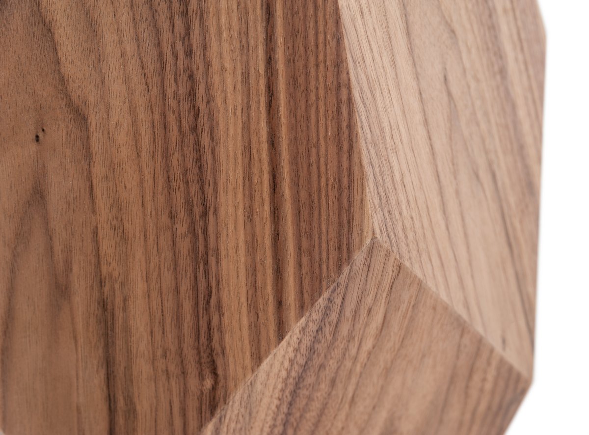 de nogal y marcas de madera. La base, cincelada en los laterales, presenta