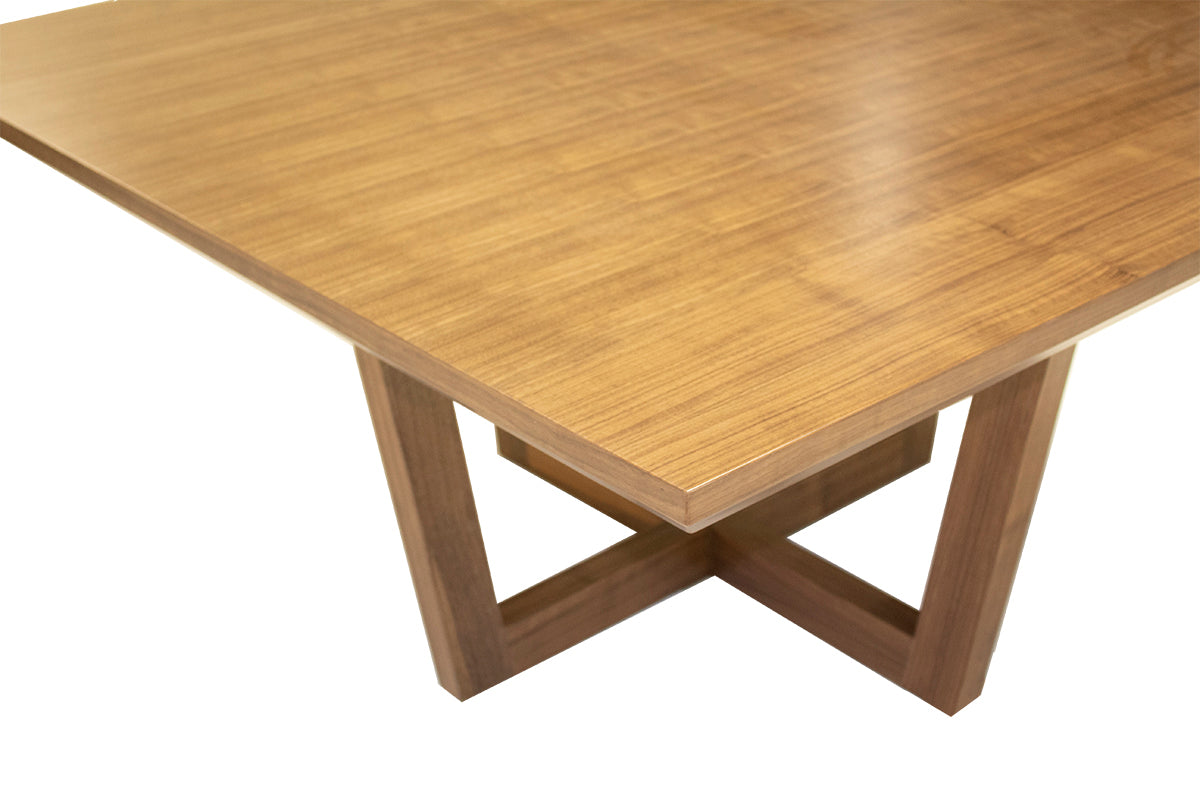 Esta Mesa de comedor rectangular en MDF en enchapado nogal natural tiene un estilo moderno por el diseño piramidal de las patas. Además que le brindará más comodidad al momento de sentarse.