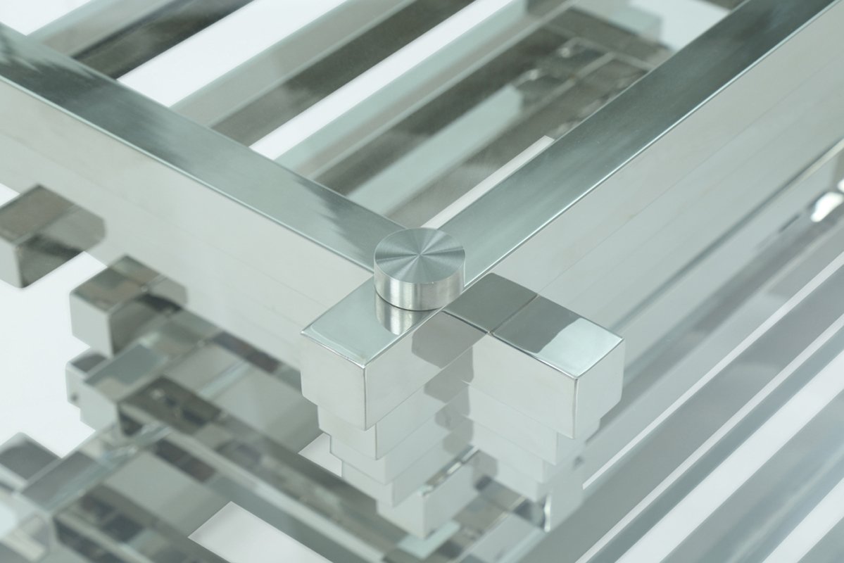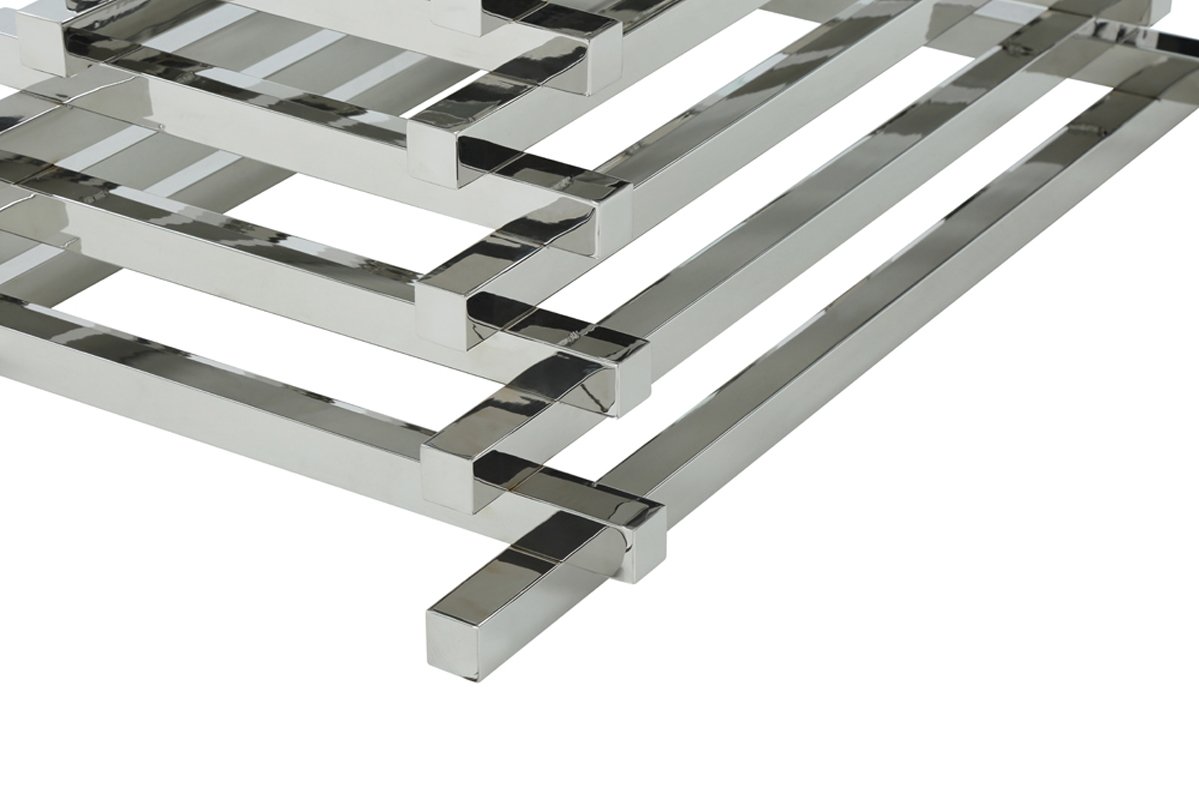 Las barras asimétricas y apiladas de acero inoxidable ascienden en forma de