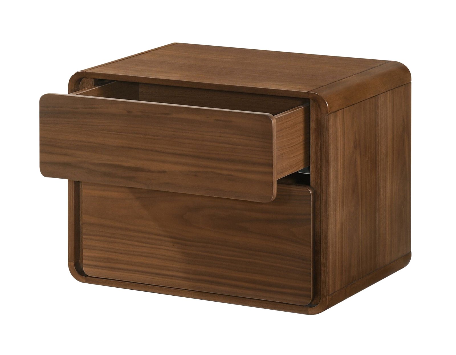 estética suave y sutil. Esta mesita de noche de madera maciza de nogal