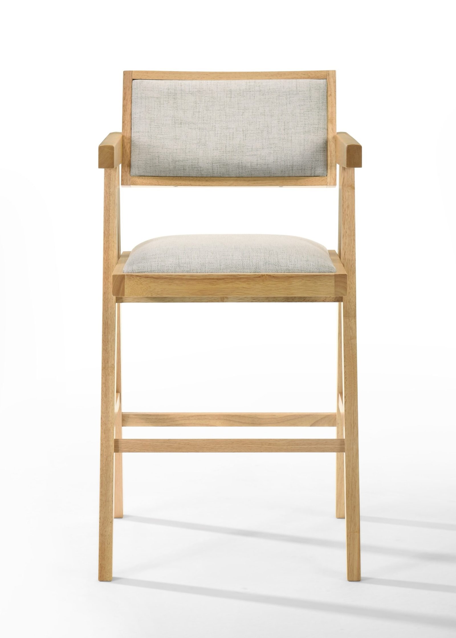 y comodidad. Su combinación de madera natural, tapicería beige y silueta