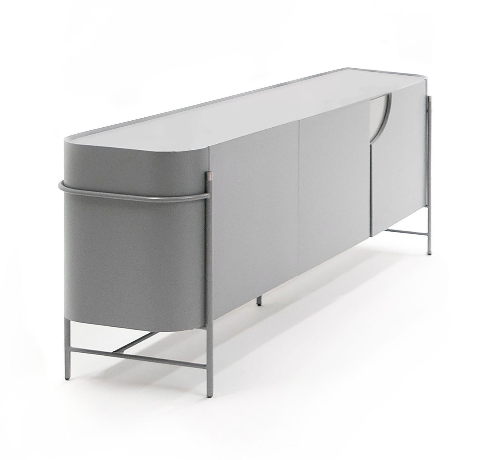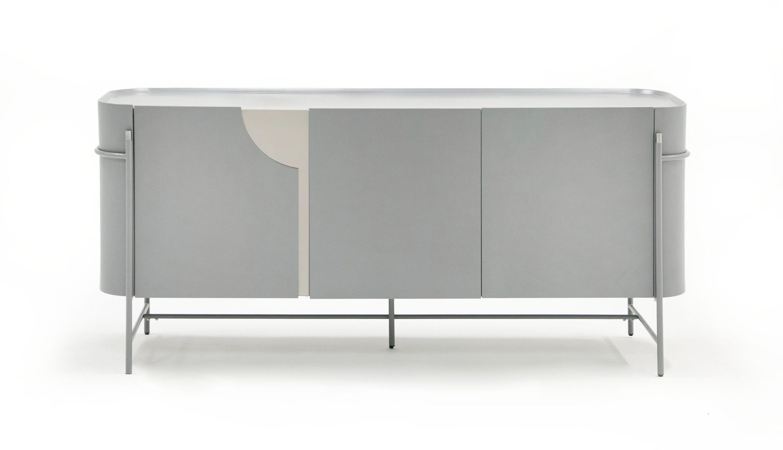 Las líneas curvas y minimalistas de este moderno buffet y la combinación de