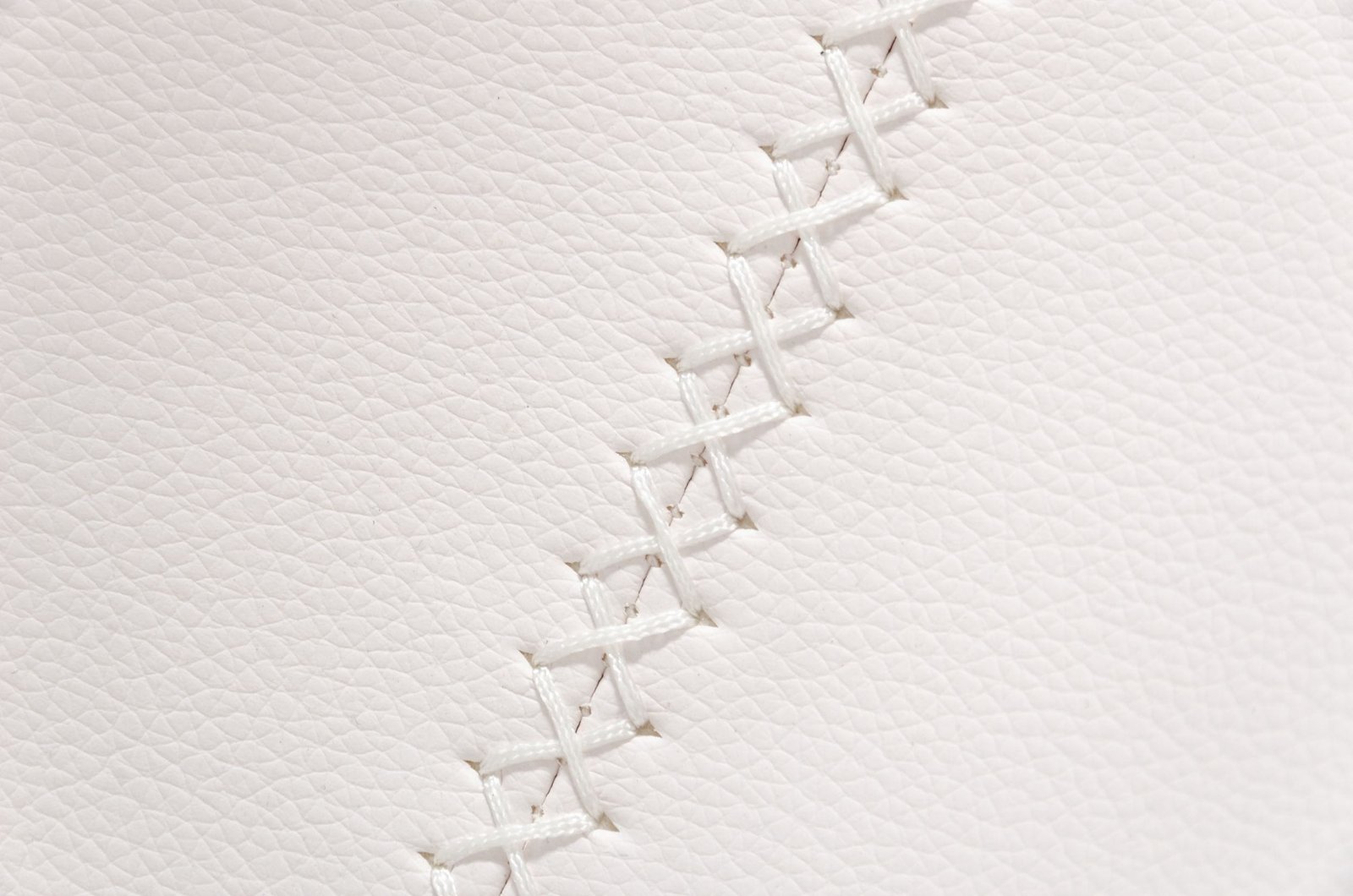 dramatismo a la tapicería de cuero ecológico blanco. Los detalles de puntadas