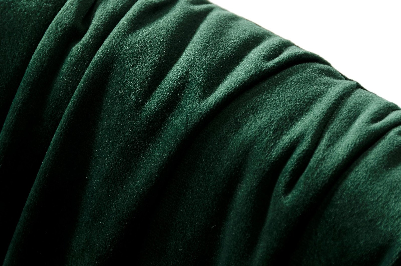 alta. El motivo del asiento envolvente es una silla de terciopelo esmeralda