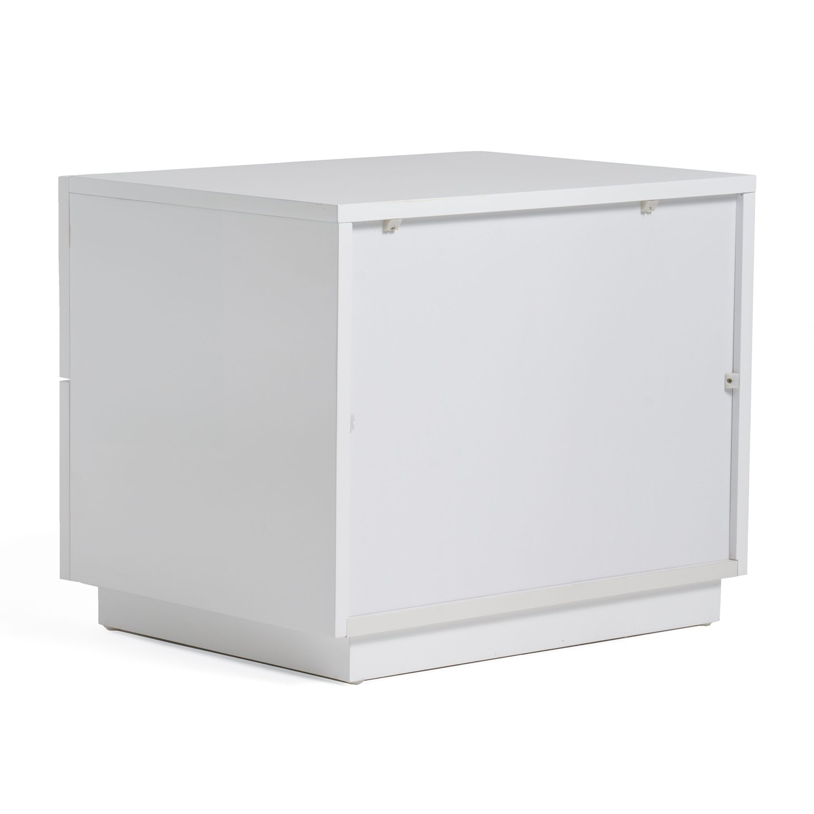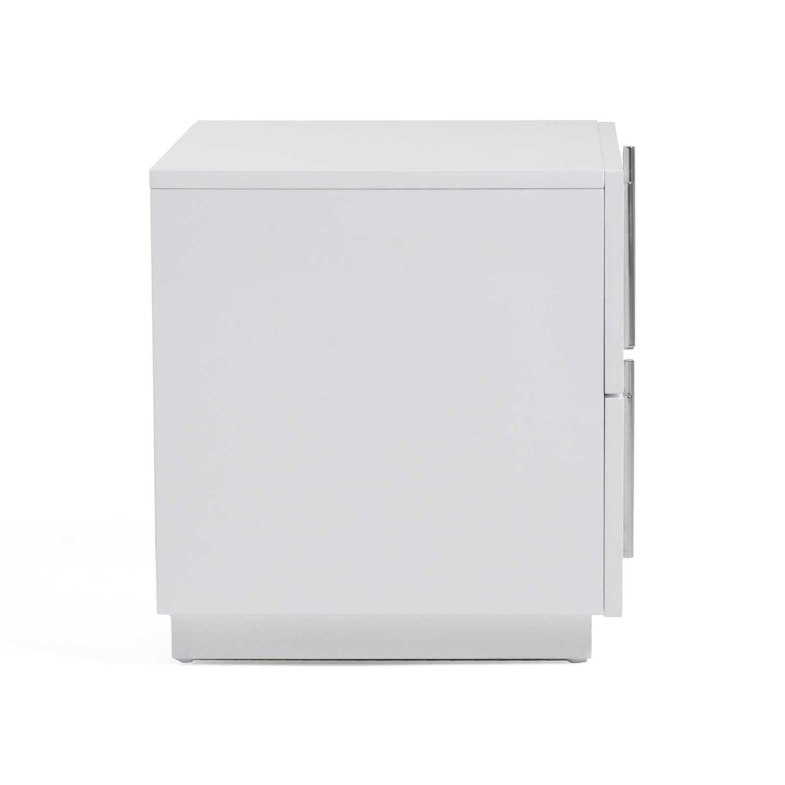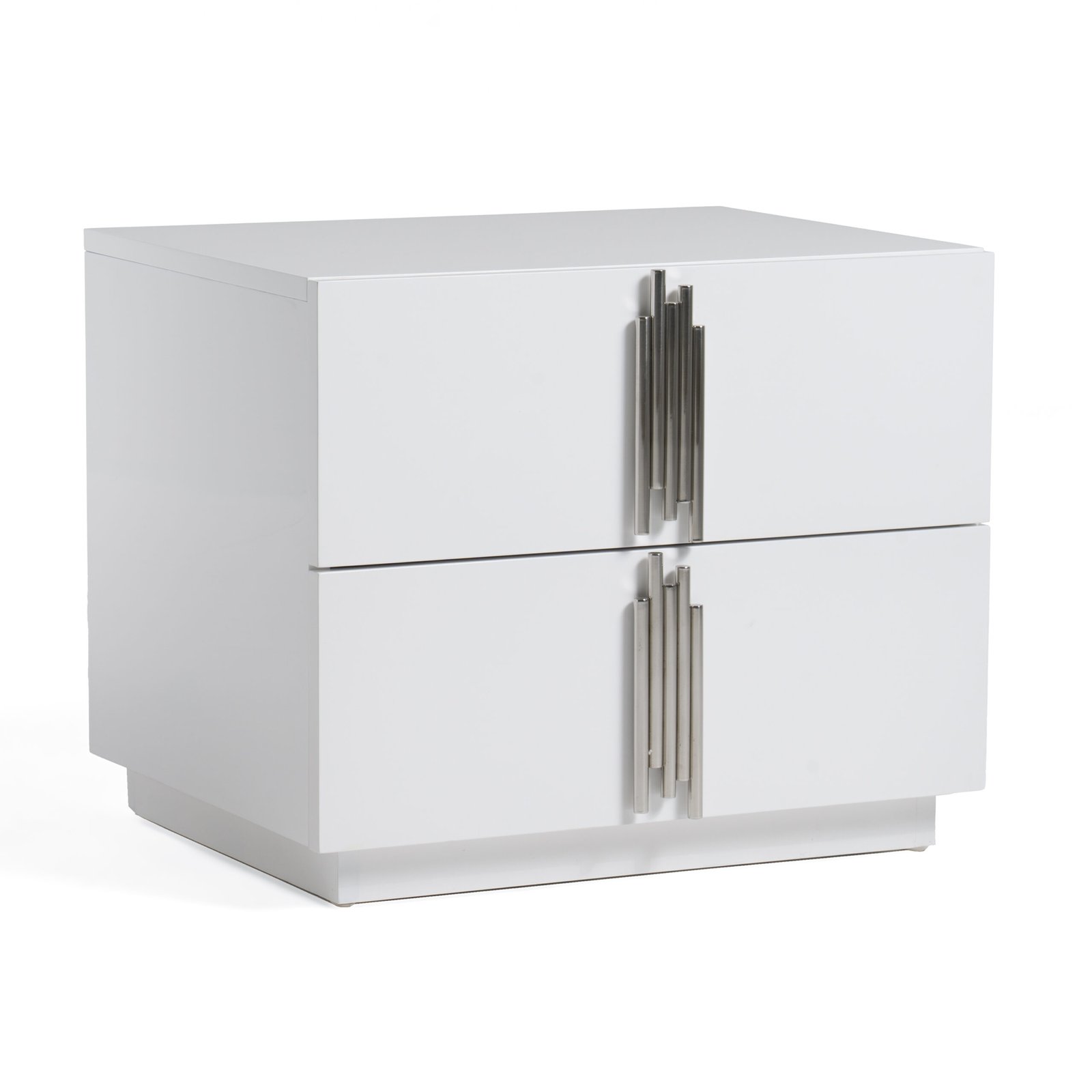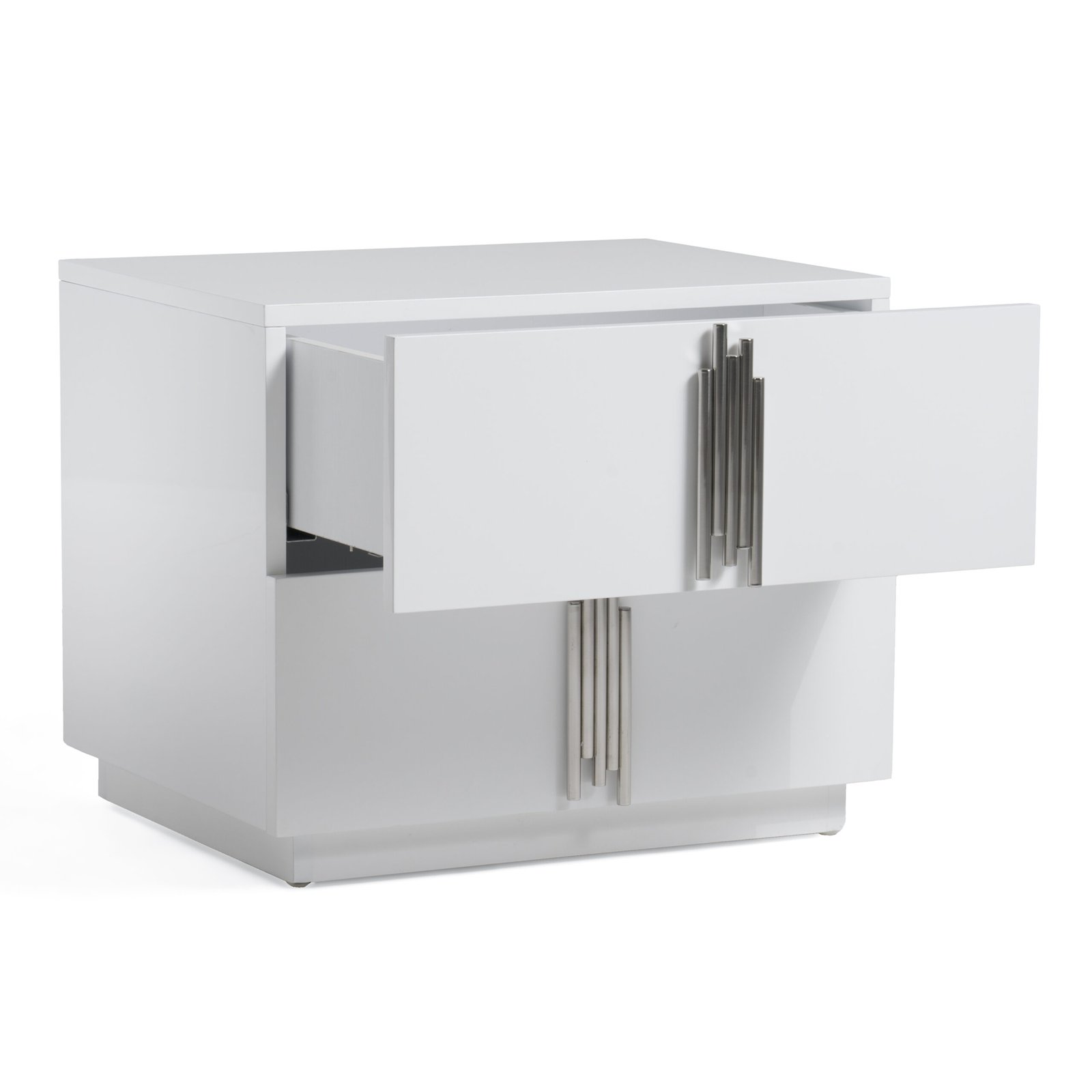 Con dos cajones espaciosos y un estilo atrevido, esta mesita de noche
