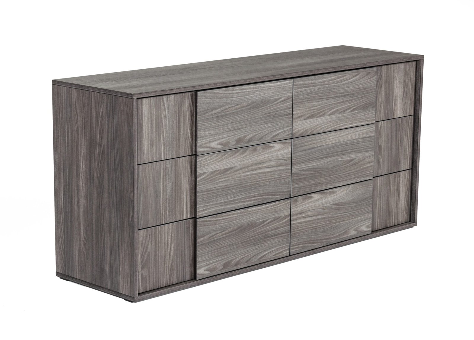 acabado enchapado en gris olmo mate, las líneas simples de este juego lo