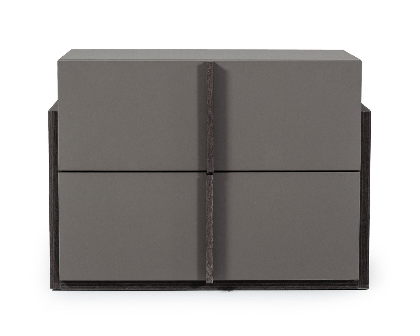 dos cajones tiene un acabado en chapa de olmo gris mate que combina con