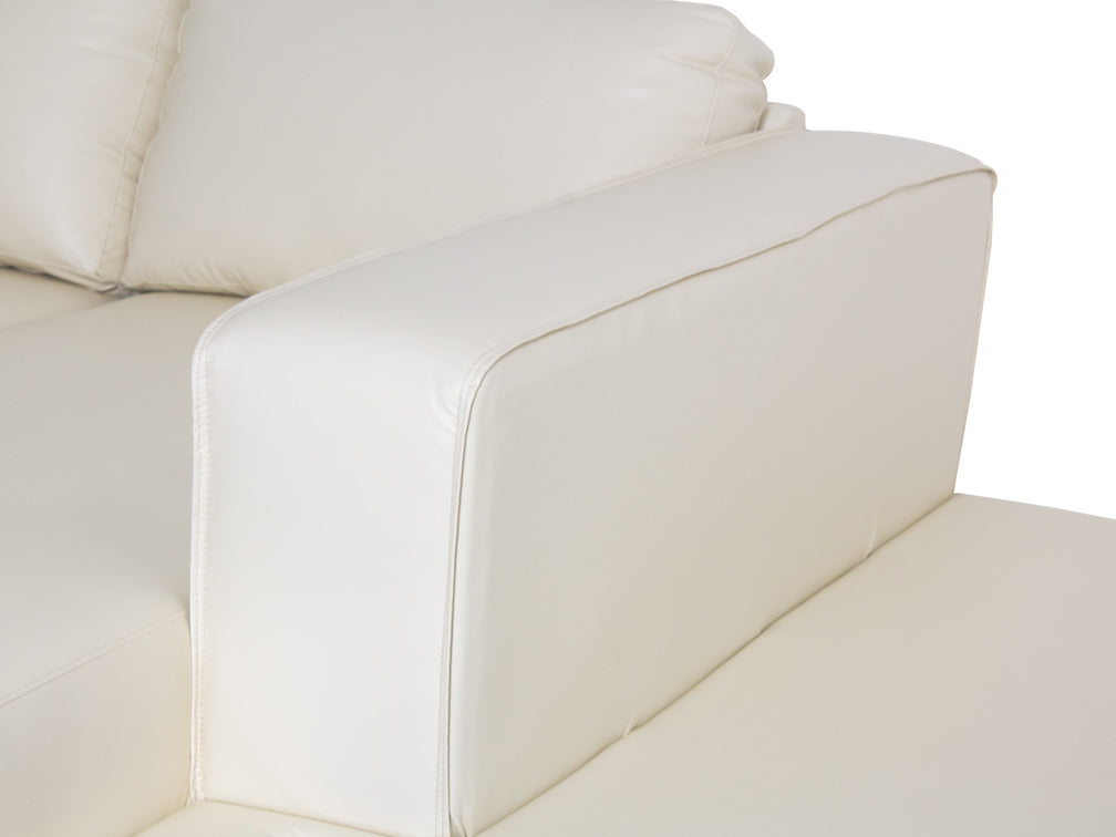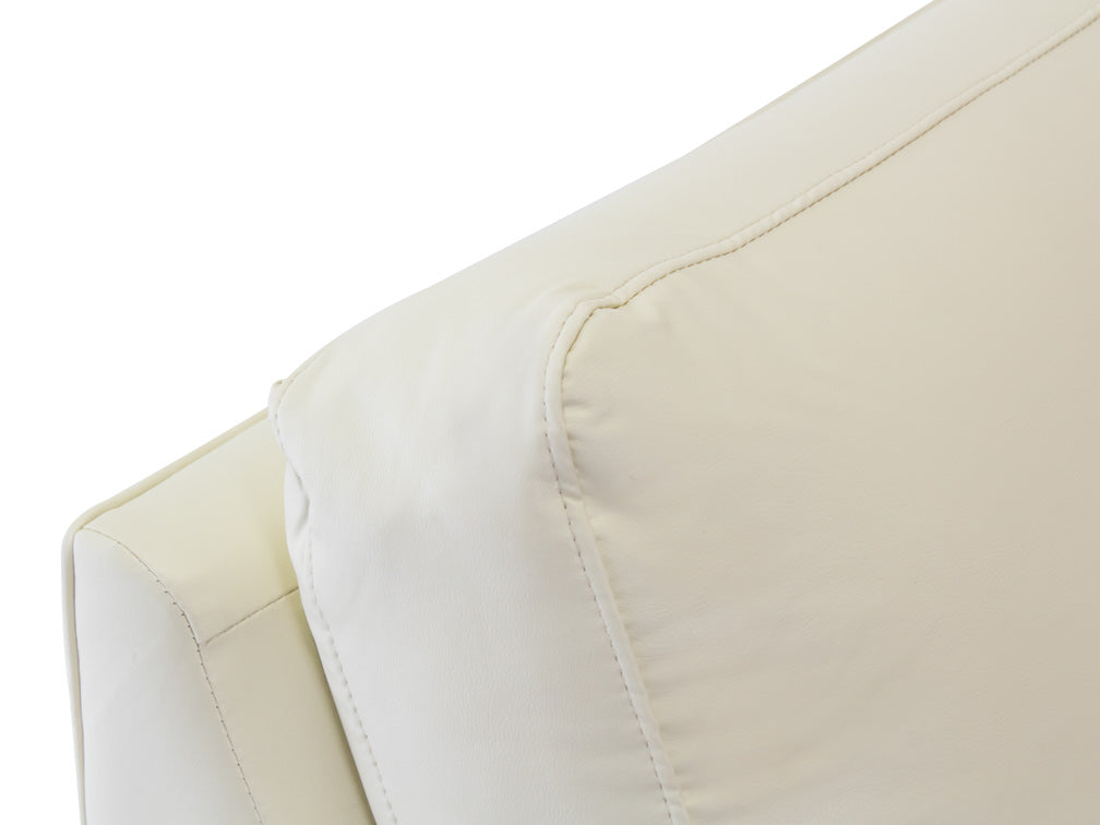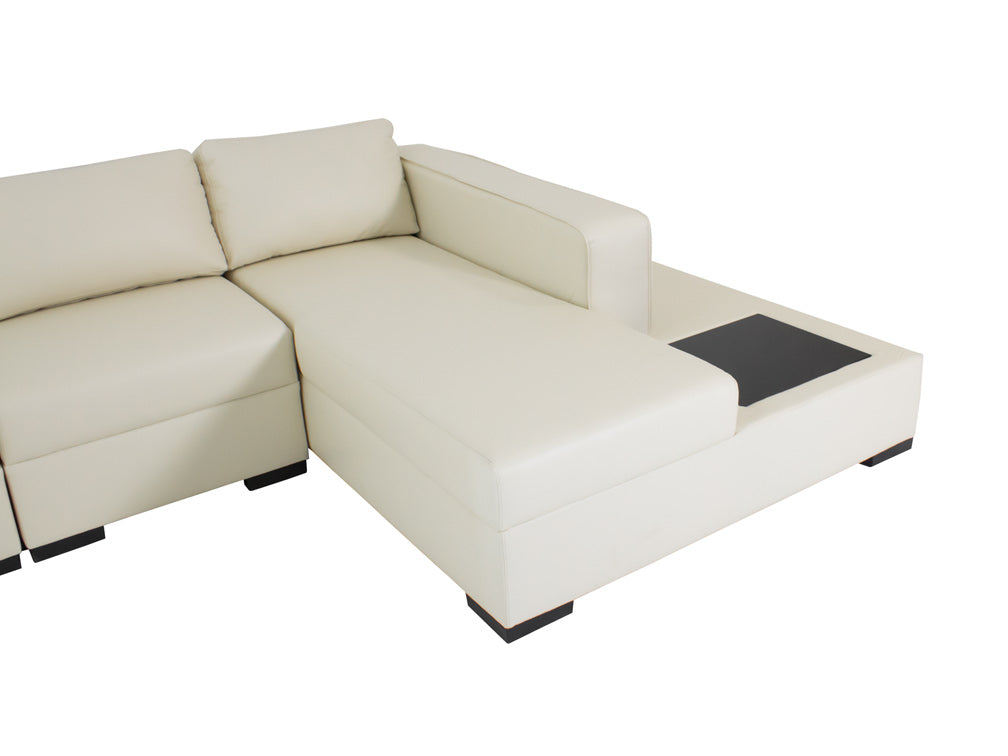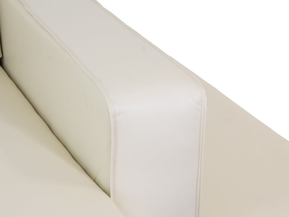 La Sala Moderna Kontempo Michigan es de madera de pino estufada con tapiz de vinil Anli en color beige, asientos rellenos de hule espuma D-10 y patas de PVC.