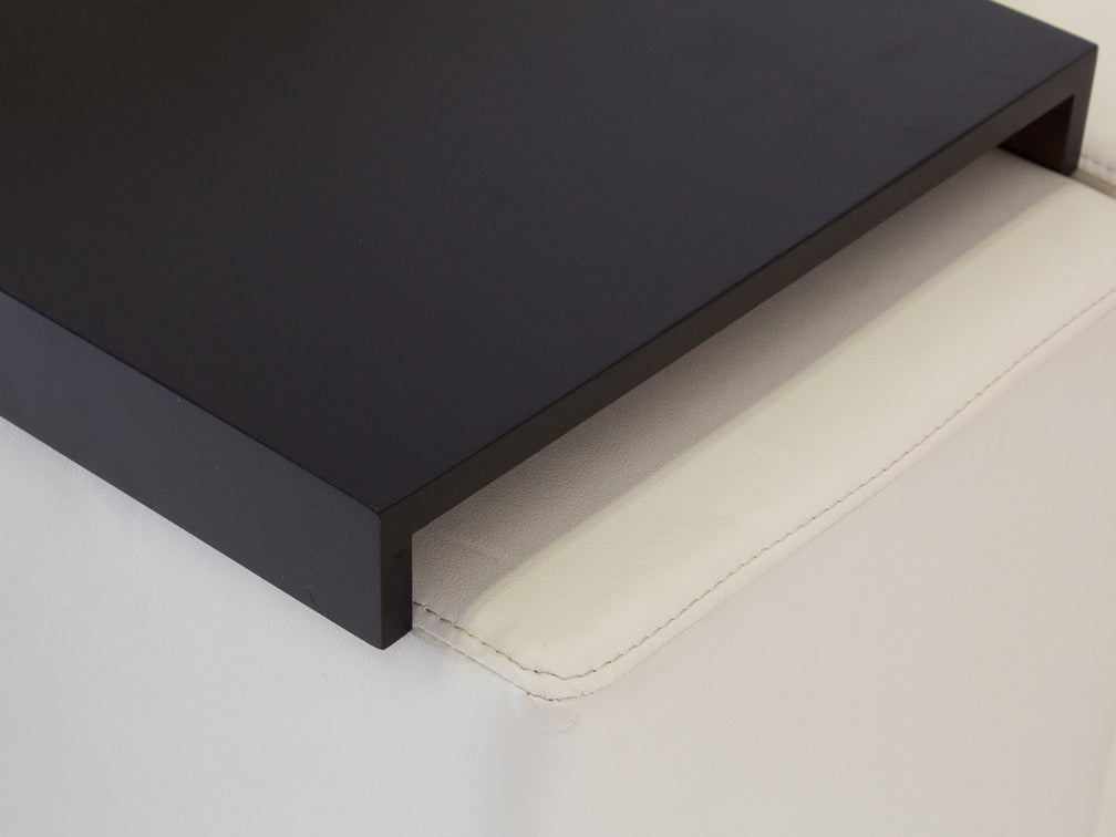 También tiene una decoración de madera en el descansa brazos izquierdo, y una de cristal en color negro en la parte trasera.