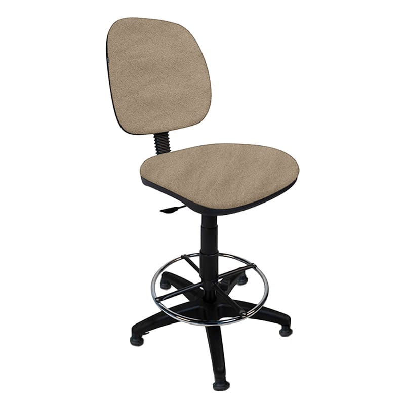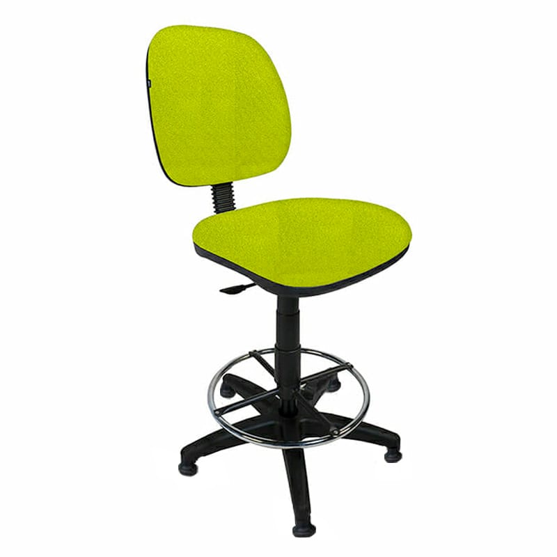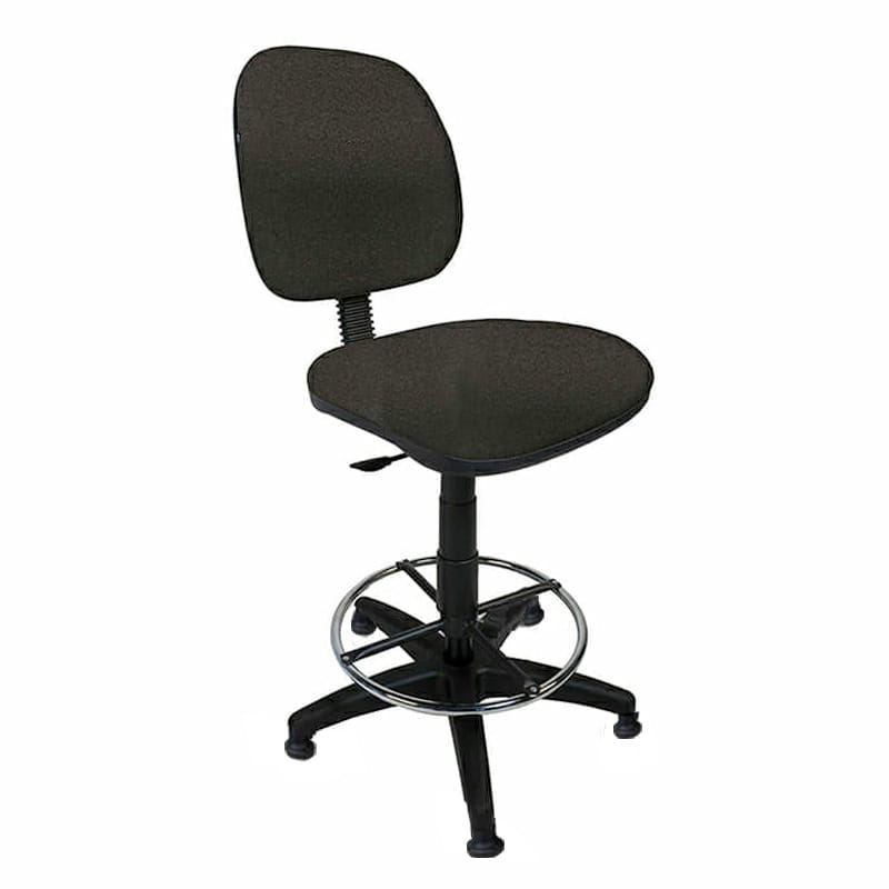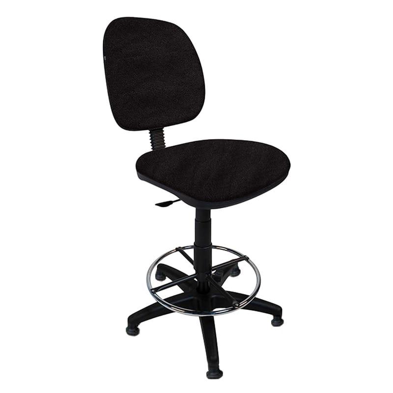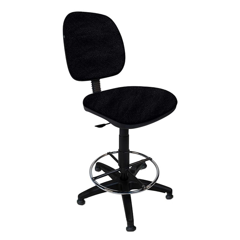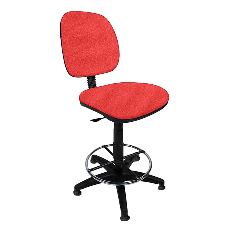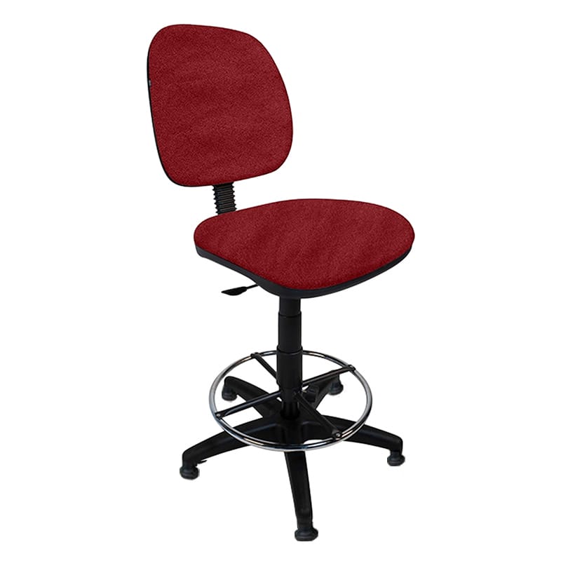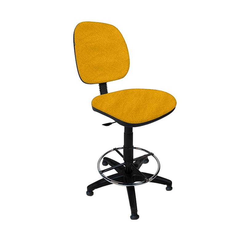 Silla alta con aro cromado y respaldo ajustable, ideal para cajeros.