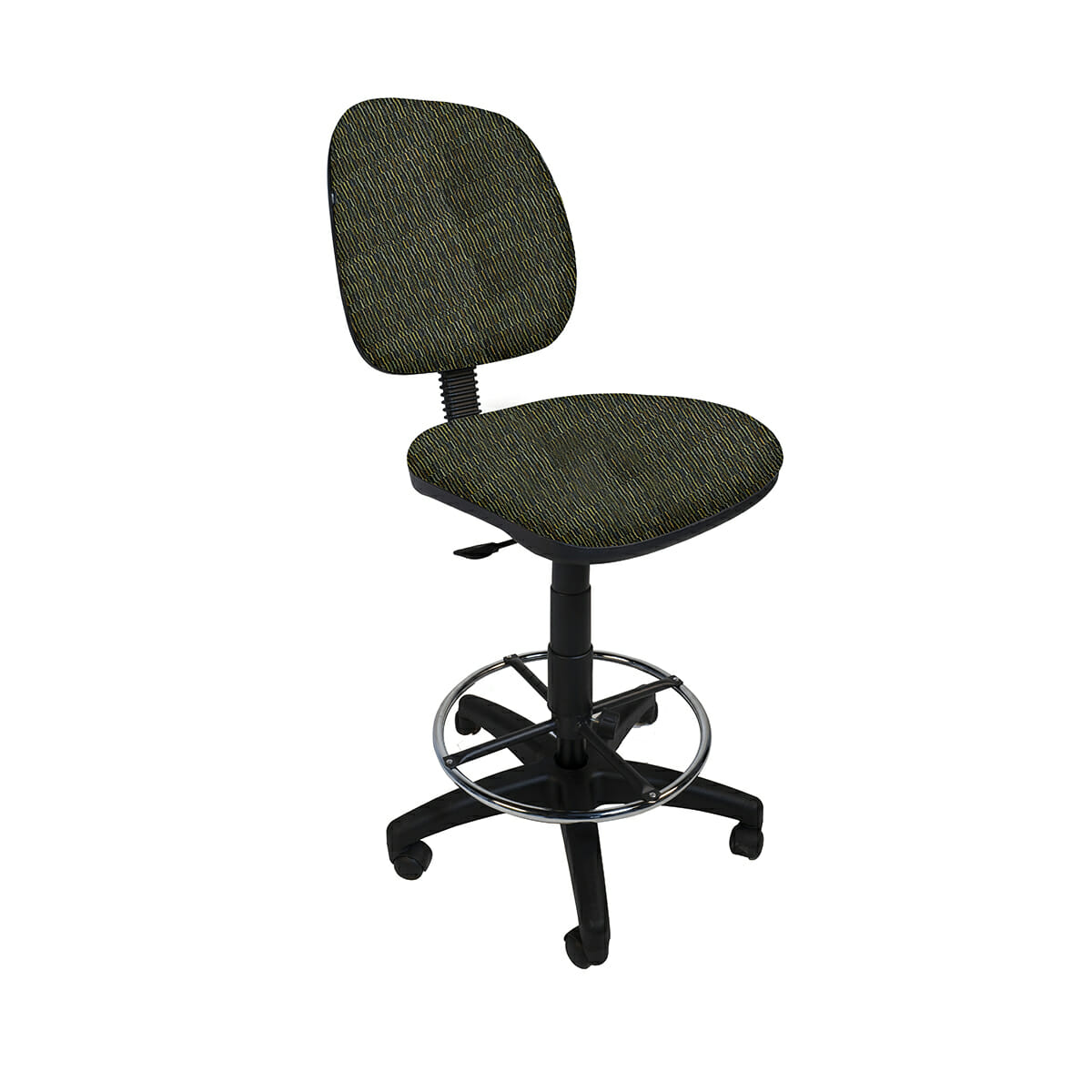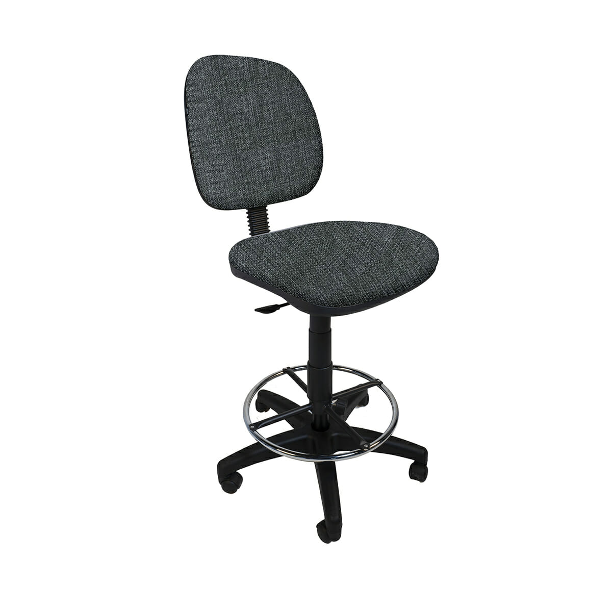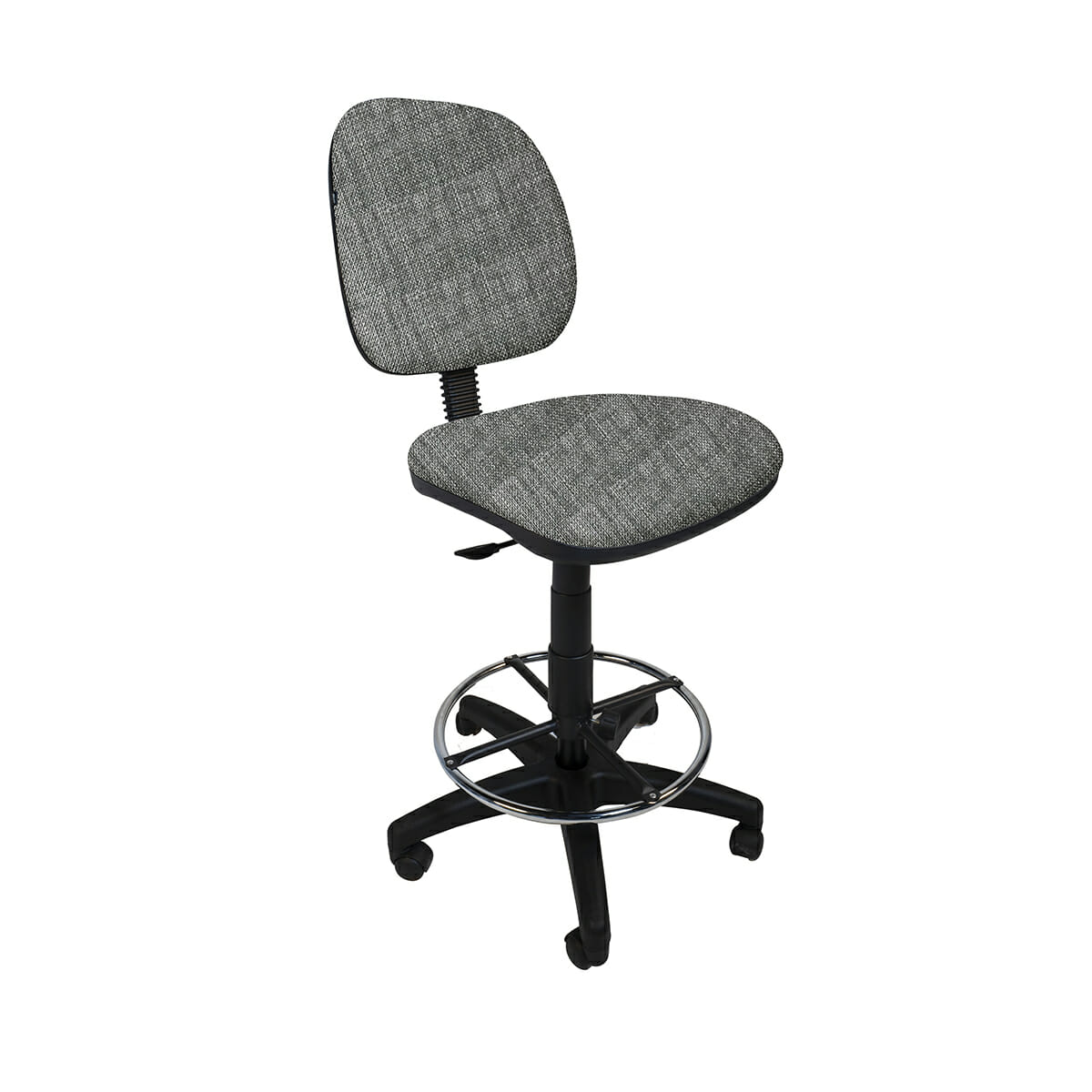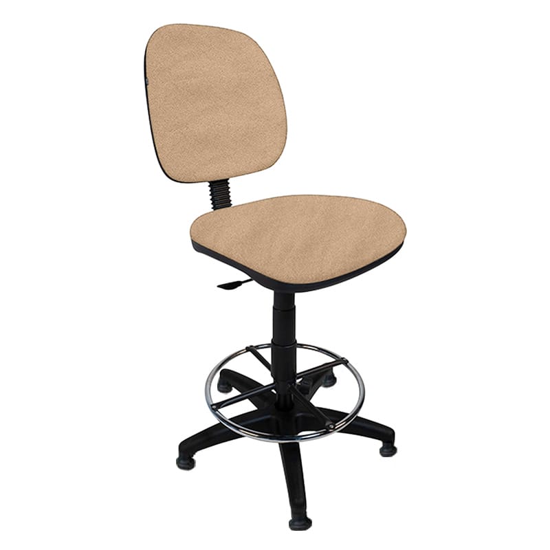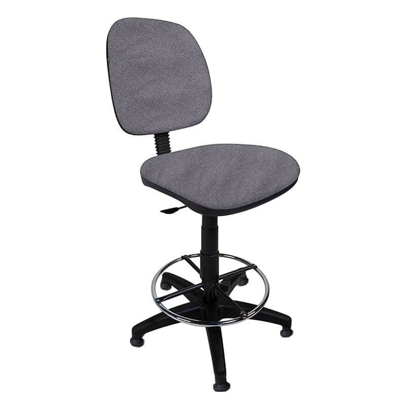 Silla alta con aro cromado y respaldo ajustable, ideal para cajeros.