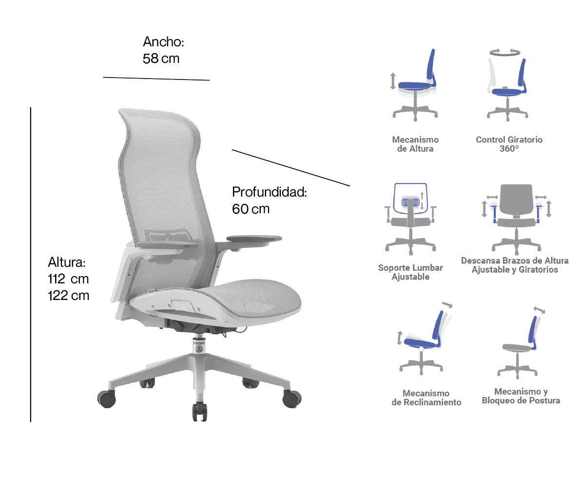 - Asiento y respaldo en mesh de alta calidad color gris