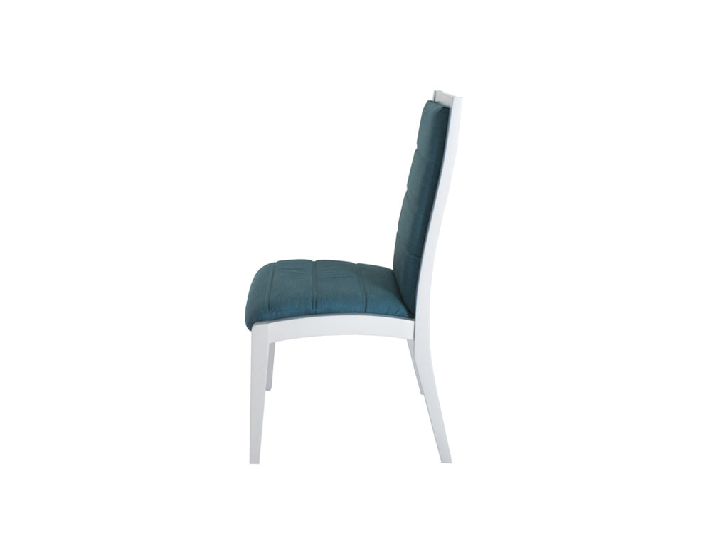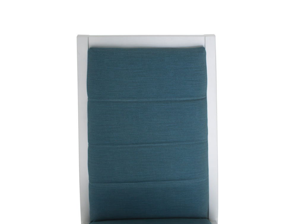 El respaldo y asiento son acojinados para tener más confort durante sus comidas. Además, tiene un diseño de líneas en horizontal que la hace resaltar.