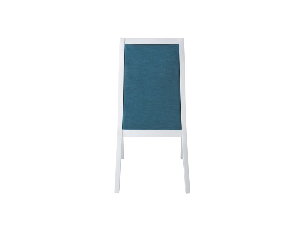 La Silla SC-70 para comedor Kontempo Kai Platai es de madera de poplar en color plateado, con tapiz de tela Indy en color azul.